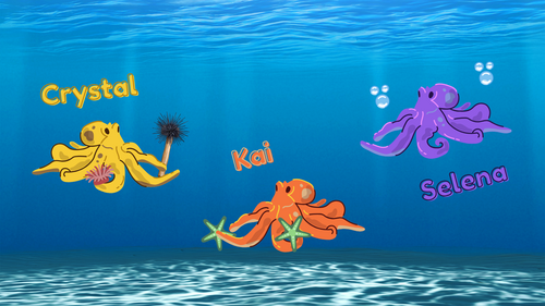| - Wields an urchin mace and a holy anemone symbol - Crystal is a healer and a fighter, always looking out for their team, however they need them | - Wields two sharpened starfish like chakrams - A fierce and determined warrior, Kai is often found either training or obsessing about the latest trends | - A mastered practitioner of bubble magic - Selena is a self-appointed princess who loves fashion, making sure that if she has to work, she werqs |